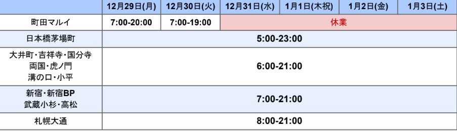 年末年始パス販売店舗