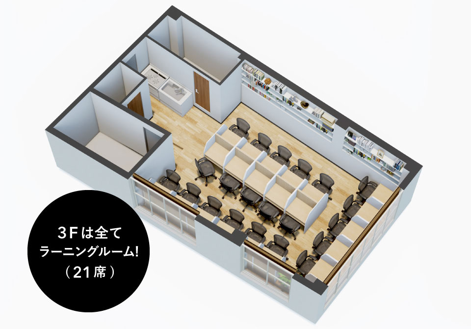 3Fはブース席で集中できる「ラーニングルーム」、